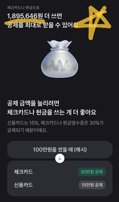 아직 연말정산 자료를 제출하기까지는 시간이 있죠? 소비를 해야 한다면 똑똑하게 얼마를 더 지출하는 것이 좋은지 계획해 볼 수 있습니다. 제 경우에도 180만 원 정도를 더 사용하면 최대로 받을 수 있다고 나오는데요. 15%밖에 공제 혜택이 없는 신용카드보다는 30%나 공제되는 체크카드나 현금영수증을 사용하는 것이 좋겠네요?