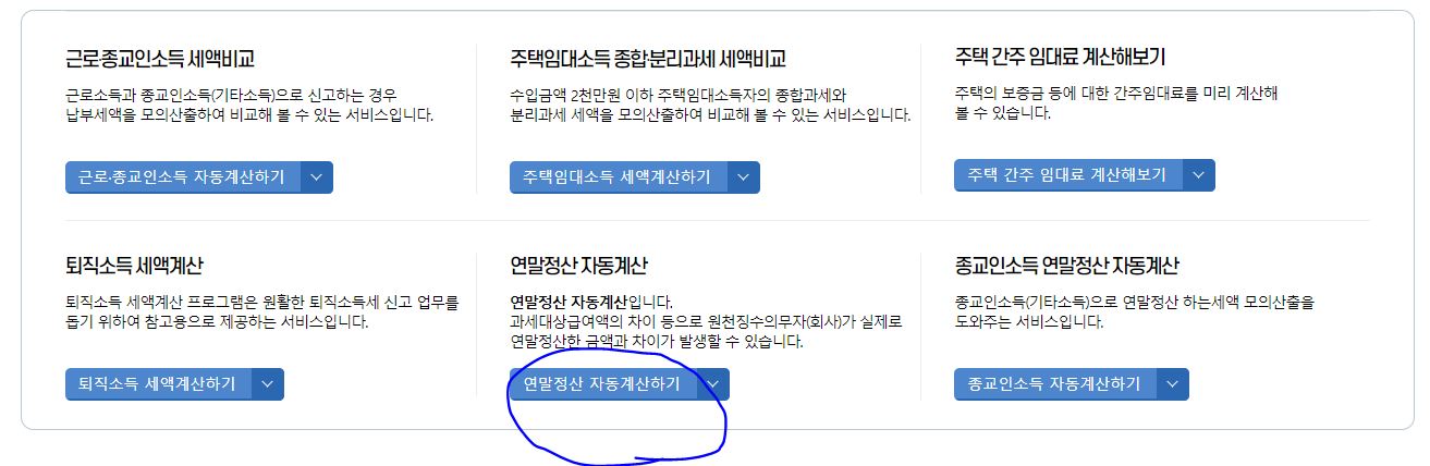 - 홈택스 -> 모의 계산 -> 연말정산 자동계산하기 -> 2023