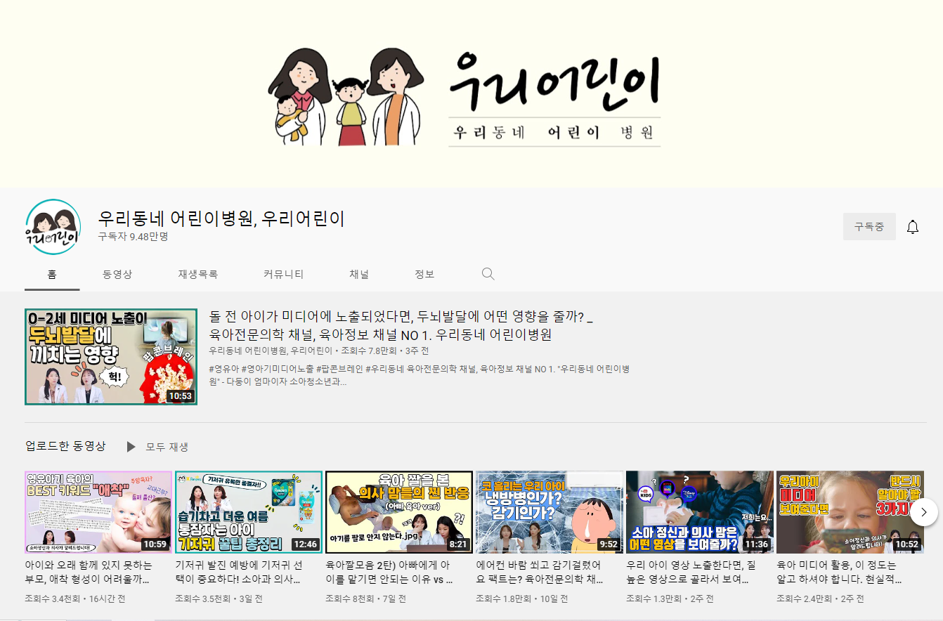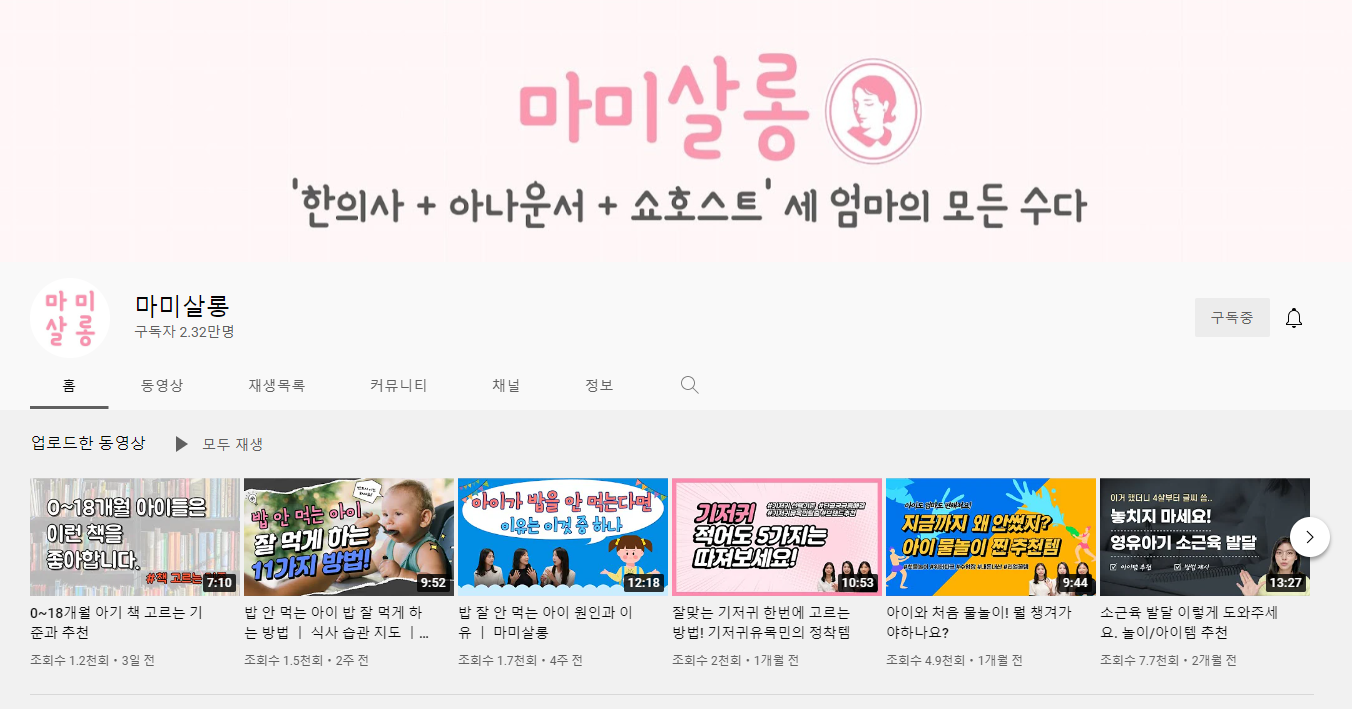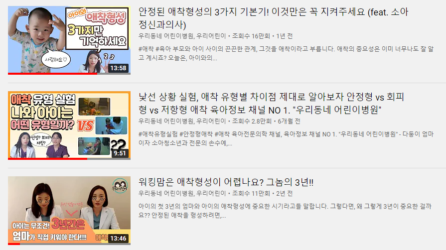 소아과 의사쌤이 운영하는 채널이라는 것은 다른 곳과 유사하지만 이곳만의 장점이 있습니다. 바로 소아 정신건강의학과 의사쌤도 같이 진행한다는 것인데요. 아이들의 심리까지 고려하면서도 의사와 워킹맘들의 채널이어서 좀 더 신뢰가 가더라고요. 의사의 전문성과 엄마의 감성을 같이 가지고 있달까요?