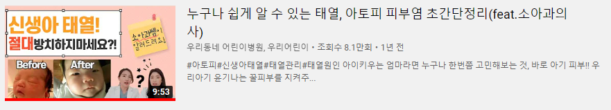 또, 태열에 관한 콘텐츠가 정말 인상적인데요. 태열, 기저귀 발진, 좁쌀 여드름, 침독, 아토피 등등 모두 그냥 습진이라는 내용입니다. 여기서 좀 더 주의가 필요할 경우 처방을 받거나 아토피로 진단된다 라는 사실을 알았습니다.