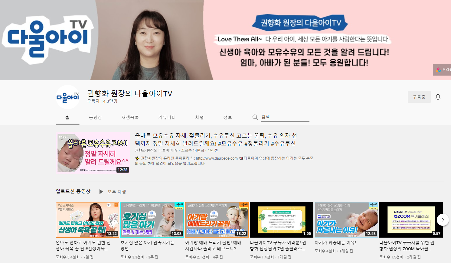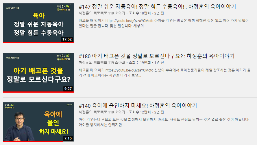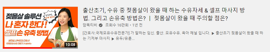 사연이나 질문을 답변해주는 형태로 진행되는 편인데요. 초보 엄마라면 특히나 젖 물리는 방법, 신생아 목욕 방법, 트림시키는 방법, 아기와 놀아주는 방법 등 궁금한 것 투성이잖아요? 이 채널은 아기를 돌보는 데 달인인 분이 마치 나와 상담하듯이 정보를 얘기해줍니다. 조리원에 가면 알려주는 내용들을 더 디테일하게 설명한다고 생각하면 좋습니다.