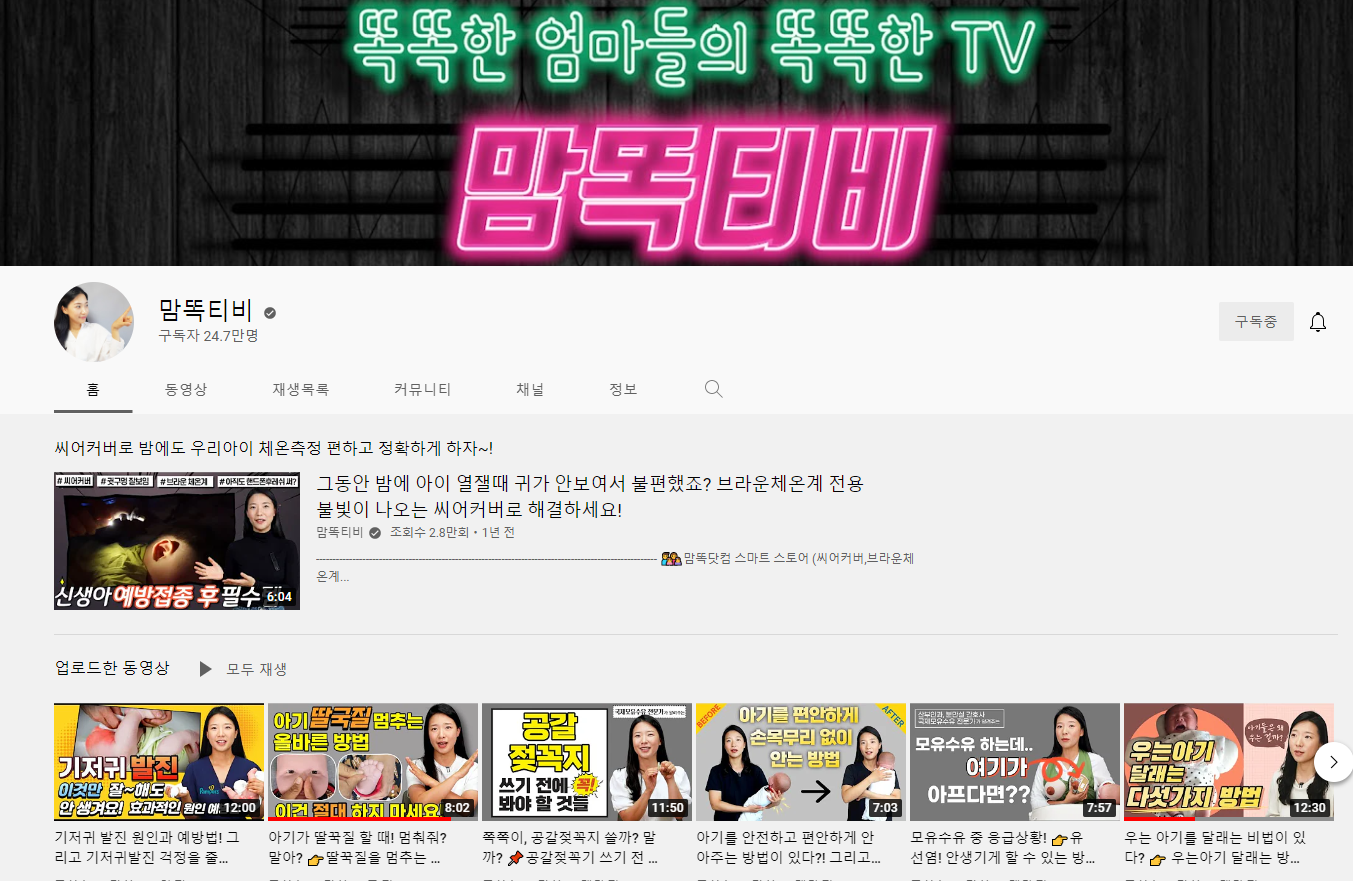 영상의 퀄리티도 너무 좋아서 보는 내내 지루할 틈이 없는 채널이에요. 저는 개인적으로 임신 기간 동안 정말 많이 참고했는데요. 유튜브로 궁금한 것을 검색하면 너무 많은 정보들로 뒤죽박죽이잖아요? 또 무엇부터 검색해야 할지 막막할 때 이 맘똑티비를 알게 돼서 임신 출산 관련 재생목록부터 차근차근 영상을 보기 시작했어요. 특히 입덧으로 괴로울 때 저 영상을 보곤 했고요.