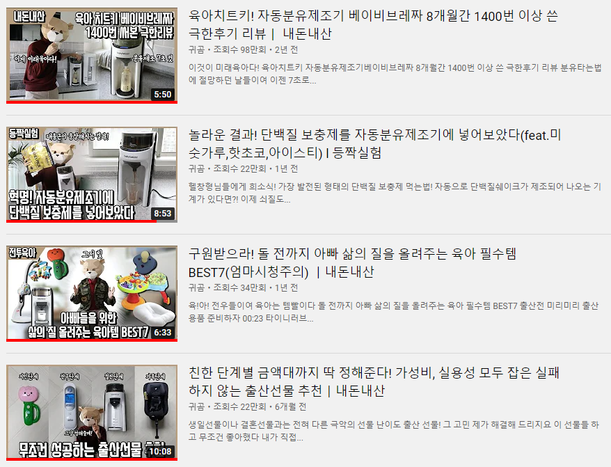 임신, 출산, 육아 전문 채널은 아닙니다. 육아를 하는 아빠일 뿐이죠. 하지만 이 분의 살림살이와 가전 등의 각종 리뷰는 그냥 지나칠 수 없습니다.