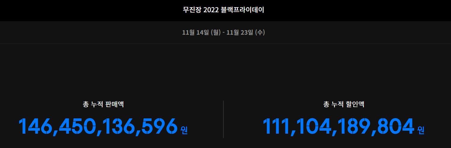 옷 좀 입는 MZ 엄빠들이라면 무신사도 노치면 섭섭하죠? 무신사의 무진장 블프 세일입니다. 누적 할인, 판매율이 엄청나네요. 캐시백과 러키박스도 다양하게 진행되는 것 같아요. 최대 80%까지 할인하네요. 또 1시간 동안 파격 할인 혜택이 주어지는 라이브 커머스 코너도 있다고 하니 워킹맘, 워킹대디들 모두 한번 가 볼까요???