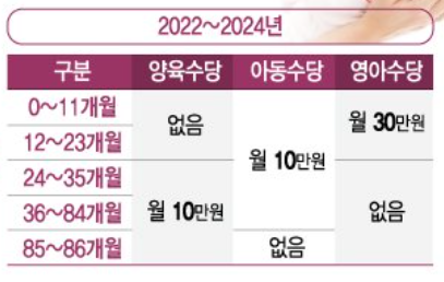 4. 영아 수당, 아동 수당 현금 지급, 양육 수당 바우처 지급
