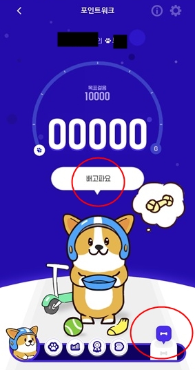그 밖에 제가 자주 사용하는 출첵룰렛, 포인트 워크도 추천드립니다. 출첵룰렛은 월 미션으로 알파벳을 완성하면 보상을 주고요. 포인트워크는 걸음수에 따라 포인트가 지급되고 강아지 밥을 매일 주면 또 포인트를 받는 게임처럼 할 수 있어 재미있는 기능입니다.