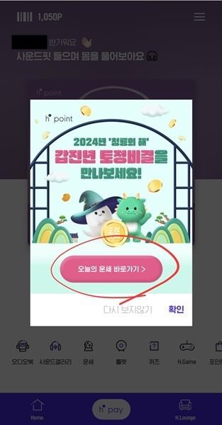 현대백화점이나 홈쇼핑, 교보문고, 예술의 전당 등 쇼핑이나 문화생활을 많이 하시는 분이라면 H Point 앱에서 운세도 보고 매일 포인트도 쌓아볼 수 있습니다. 강아지를 키우면서 재미있게 포인트를 받는 기능도 있으니 이제부터 설명해 드릴게요.