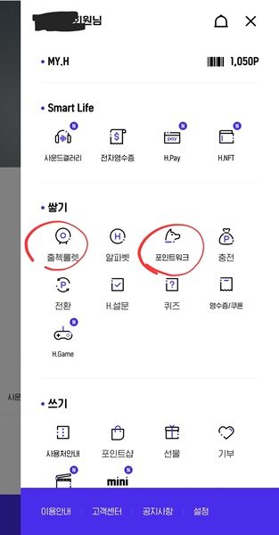 그 밖에 제가 주로 활용하는 출석체크 룰렛, 만보기 포인트 받기, 포인트 전환 기능이 있으니 유용하게 활용해 보세요.