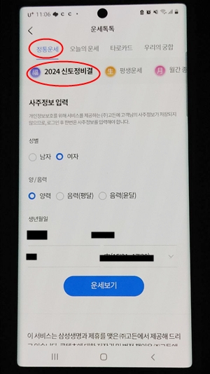 - 메뉴에서 토정비결을 클릭