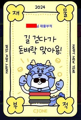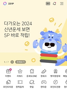 CJ 계열에서 유용하게 쓸 수 있어 많이들 활용하시는 포인트이죠? CJ One 앱에서도 신년 운세 서비스를 제공합니다. 포인트 이벤트까지 진행 중인데요. 앱에 접속하면 베너에 신년 운세 보기가 있습니다. 운세만 봐도 5포인트 지급, 버튼을 클릭해 친구에게 공유하면 2024 포인트의 주인공이 될 수 있습니다.