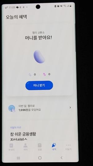 모니모는 5000걸음 이상 걸으면 젤리를 지급하고 매일 출석체크를 해도 젤리를 지급합니다. 이 젤리를 교환소에서 포인트로 전환할 수 있고 이걸 모니머니라고 부릅니다. 이 모니머니를 바로 내가 오픈뱅킹으로 연결해 둔 내 통장으로 입금시킬 수 있습니다. 바로 현금화해서 통장에 넣어주는 어플은 제가 알아본바로는 별로 없는데요. 금액도 커서 모으는 재미가 쏠쏠합니다.