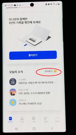 모니모는 화면을 캡처할 수가 없습니다. 안타깝지만 다른 핸드폰으로 촬영한 사진을 참고용으로 올리니 화질에 대해 양해를 바랄게요.