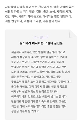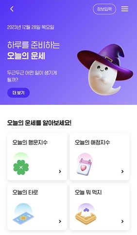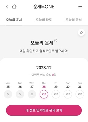출석 체크 보상을 위해 매일 오늘의 운세를 확인하면 포인트를 줍니다. 오른쪽 상단에 오늘의 운세와 타로도 있습니다.